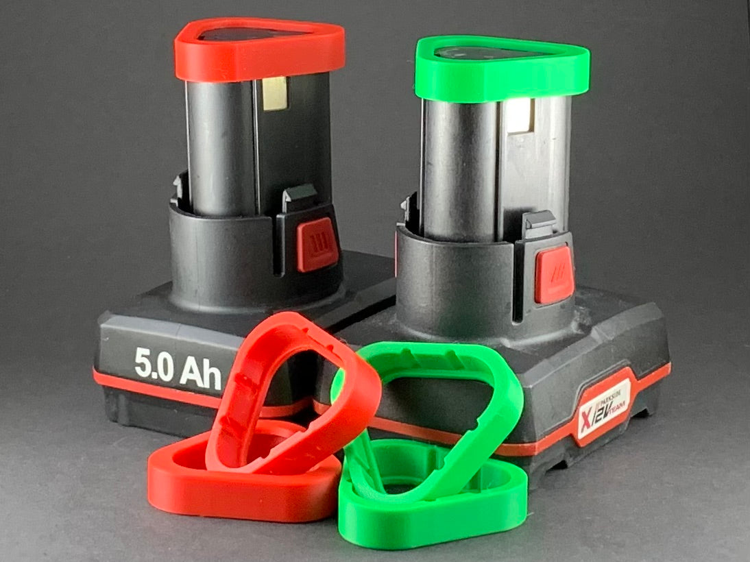 Als je meer dan één accu hebt, dan is het soms moeilijk om snel te zien welke accu nog vol is en welke opgeladen moet worden. Met deze rode en groene clip is dat onmiddellijk duidelijk. Op die manier voorkom je dat je op weg gaat met een lege accu of dat je een reeds opgeladen accu nogmaals begint op te laden. De clip geeft ook wat extra valbescherming.